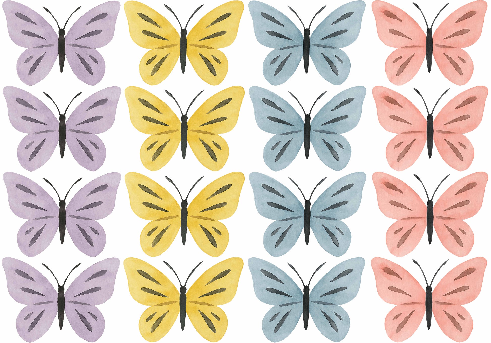 Watercolour Butterflies - Fabric Stickers - Pattern